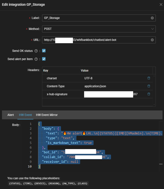 But the HW Event target of the Integration is broken. As the image shows, the Integration does not work with HW events. Cannot save configuration when Alert metric is turned on and off.